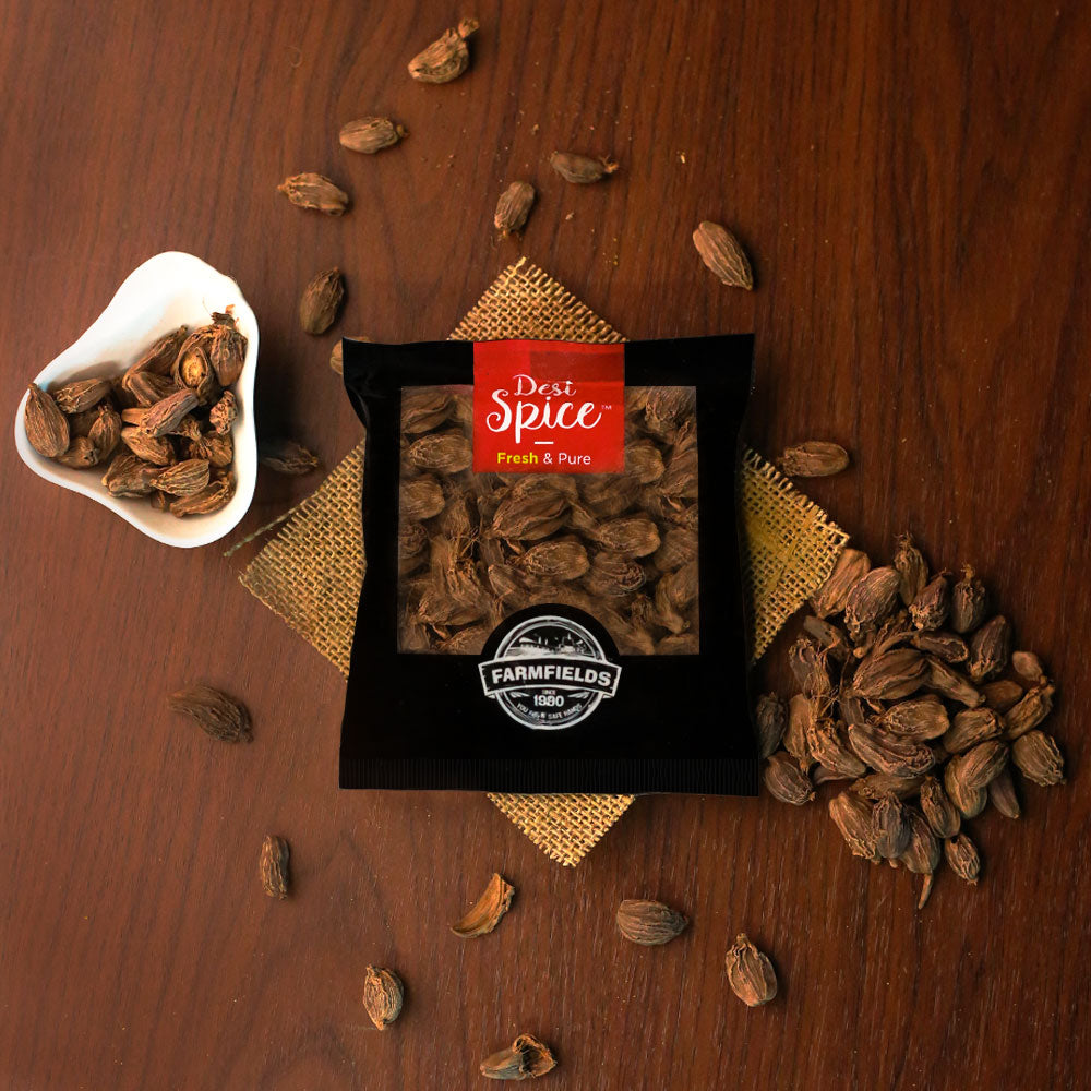 FF DESI MOTI ELAICHI KALAAAN 50GM PC is a premium cardamom powder made with freshly-ground Indian spices. It features a distinct aroma and flavor, perfect to elevate your dish from ordinary to extraordinary. With 50gm per package, this is a great value product.